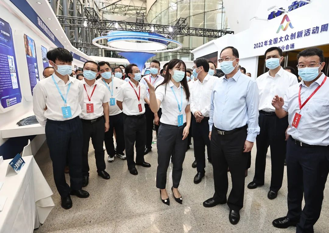 儀式結(jié)束后,毛偉明一行還參觀了“湘向未來”成果展。展廳展出了118個雙創(chuàng)項目和30個雙創(chuàng)典型人物,充分展示了湖南創(chuàng)新創(chuàng)業(yè)的新舉措、新進展、新成果